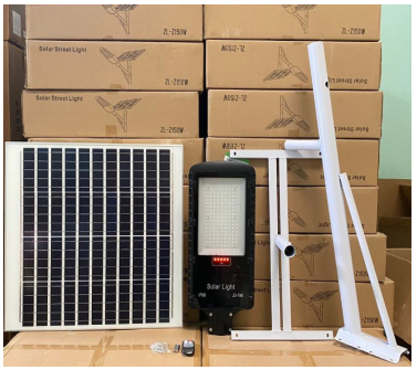 | ZL-Z200 | Công suất: 200W Kích thước thân đèn: 610 * 250 mm Kích thước tấm pin năng lượng : 670 * 640 * 25 mm Tấm pin mặt trời: đa tinh thể 6V 60W Pin lưu trữ: pin lithium sắt phosphate 3.2V 60.000mah Hạt đèn chip: hạt đèn pha lê 163 led Chất liệu: Nhôm nguyên khối Cấp chống nước: IP65 Thời gian sạc: 4 – 6h. Thời gian chiếu sáng: ≥12- 16h Diện tích chiếu xạ: khoảng 200m2 Sản phẩm gồm: Đèn đường + tấm pin năng lượng mặt trời + điều khiển từ xa + giá đỡ tấm pin |