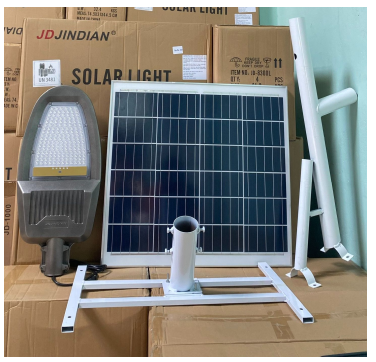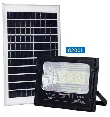 | JD-699 | Công suất: 200W Kích thước đèn: 575*240mm Số lượng mắt LED 448 LED, Thời gian chiếu sáng 10-12h Diện tích chiếu sáng: 350m2 Dung lượng pin: 33.000mah Chất liệu tấm pin: Poly tuổi thọ 10-12 năm Điện áp đầu ra 6V45W Thời gian sạc pin 4-6h Bộ sản phẩm bao gồm: Đèn + điều khiển từ xa + tấm pin năng lượng mặt trời + cần gắn đèn |