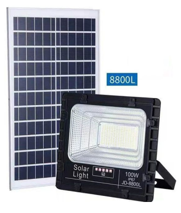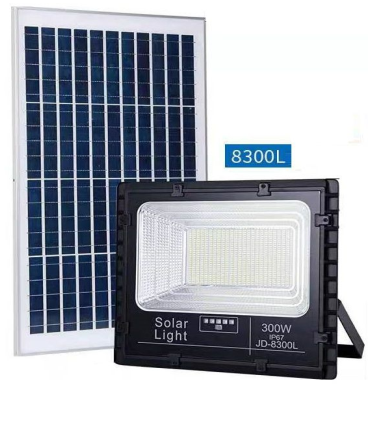 | JD-798 | Công suất: 300W Kích thước thân đèn: 620 * 310mm Kích thước tấm pin năng lượng : 700 * 700mm Tấm pin mặt trời: đa tinh thể 6V 60W Pin lưu trữ: pin lithium sắt phosphate 3.2V 50000mah Hạt đèn chip: hạt đèn pha lê 162 3030, nhiệt độ màu 6000K Chất liệu: Nhôm nguyên khối Cấp chống nước: IP66 Thời gian sạc: 4 – 6h. Thời gian chiếu sáng: ≥12h Diện tích chiếu xạ: khoảng 200m2 Sản phẩm gồm: Đèn đường + tấm pin năng lượng mặt trời và điều khiển từ xa |